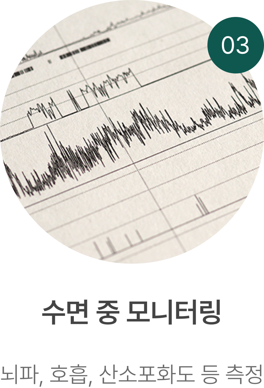 코골이, 수면무호흡증, 불면증 등의 원인을 정확하게 진단하는 검사입니다.