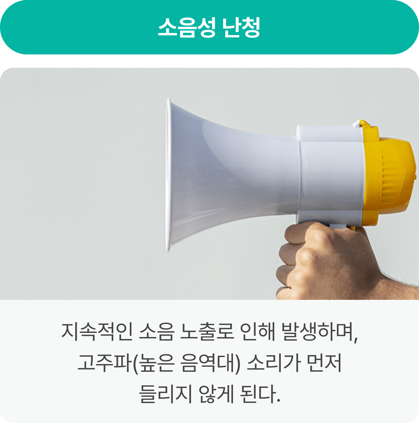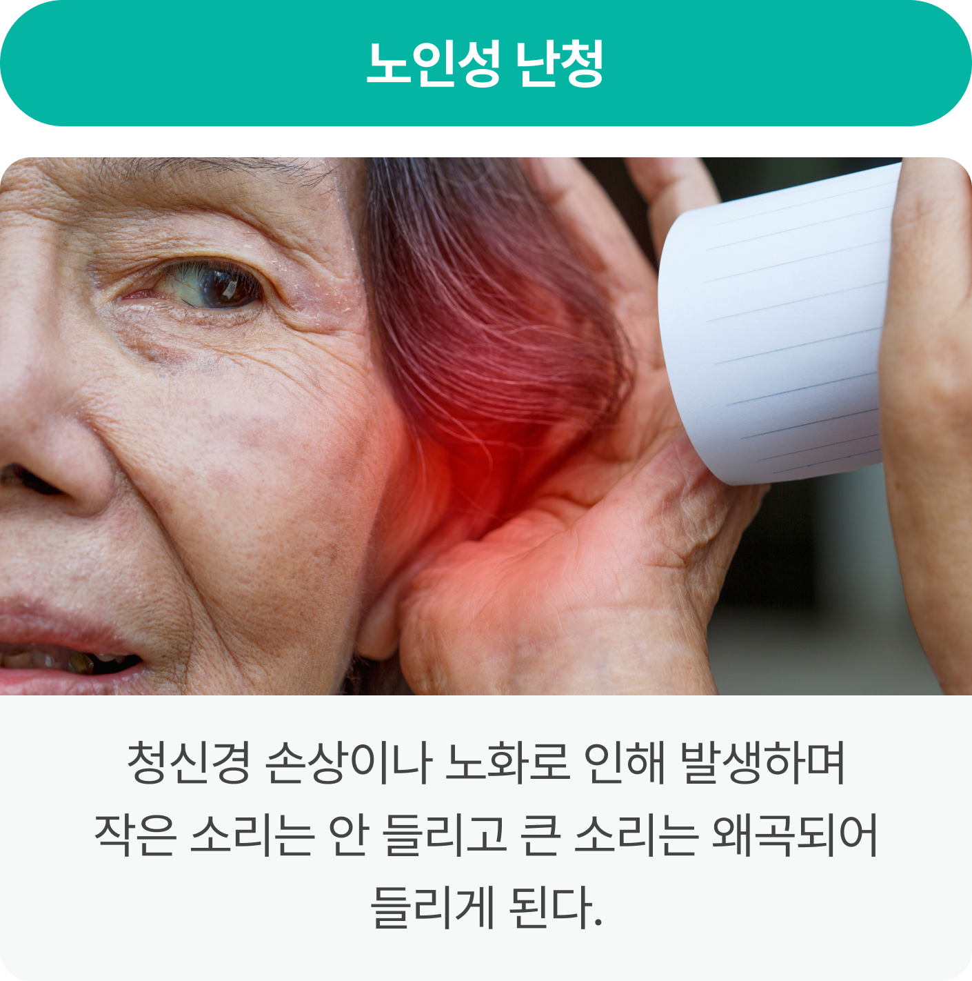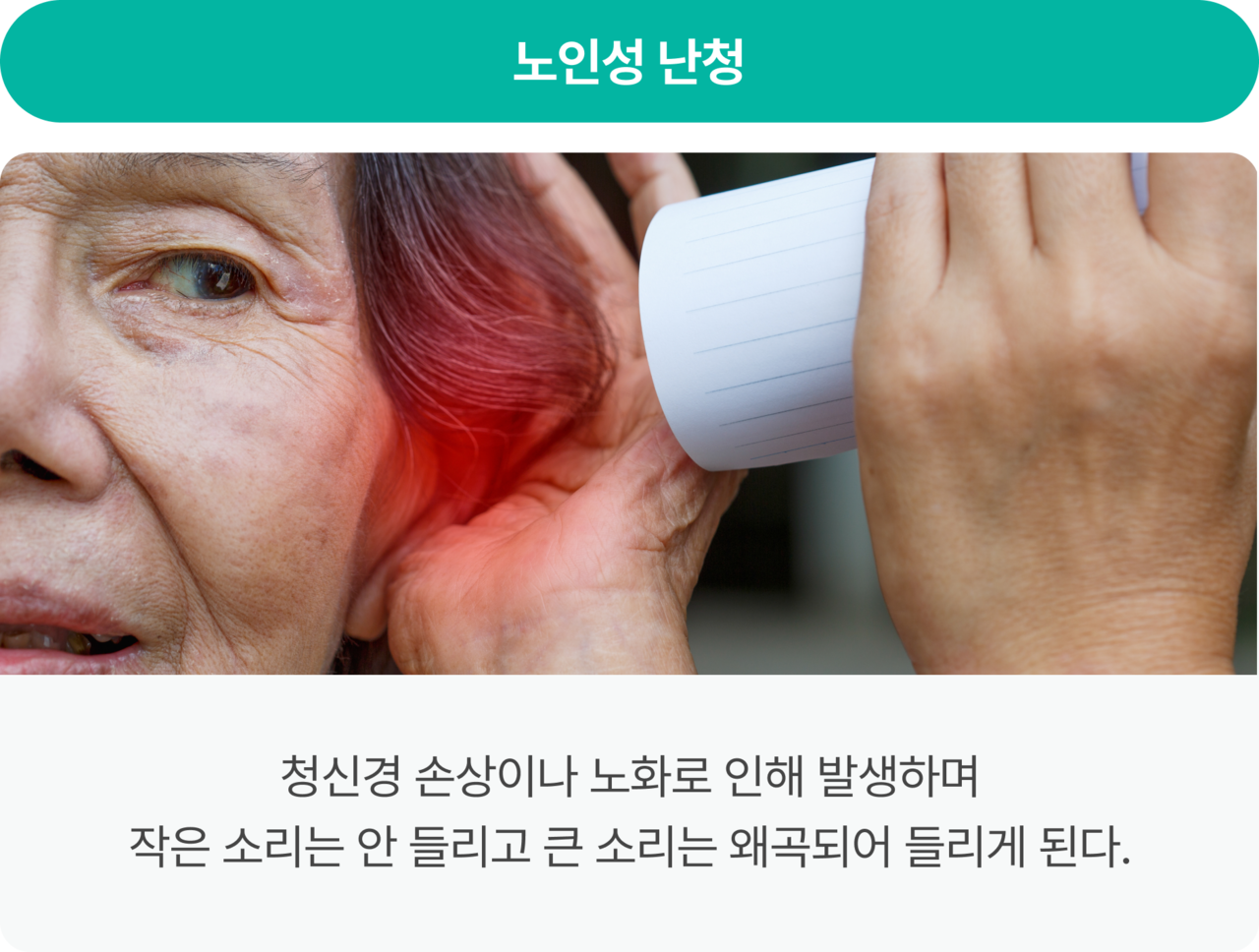 소리를 정상적으로 인지하기 어려운 상태로, 선천적 요인뿐만 아니라 노화,
