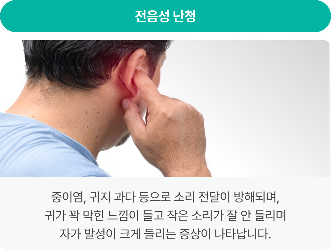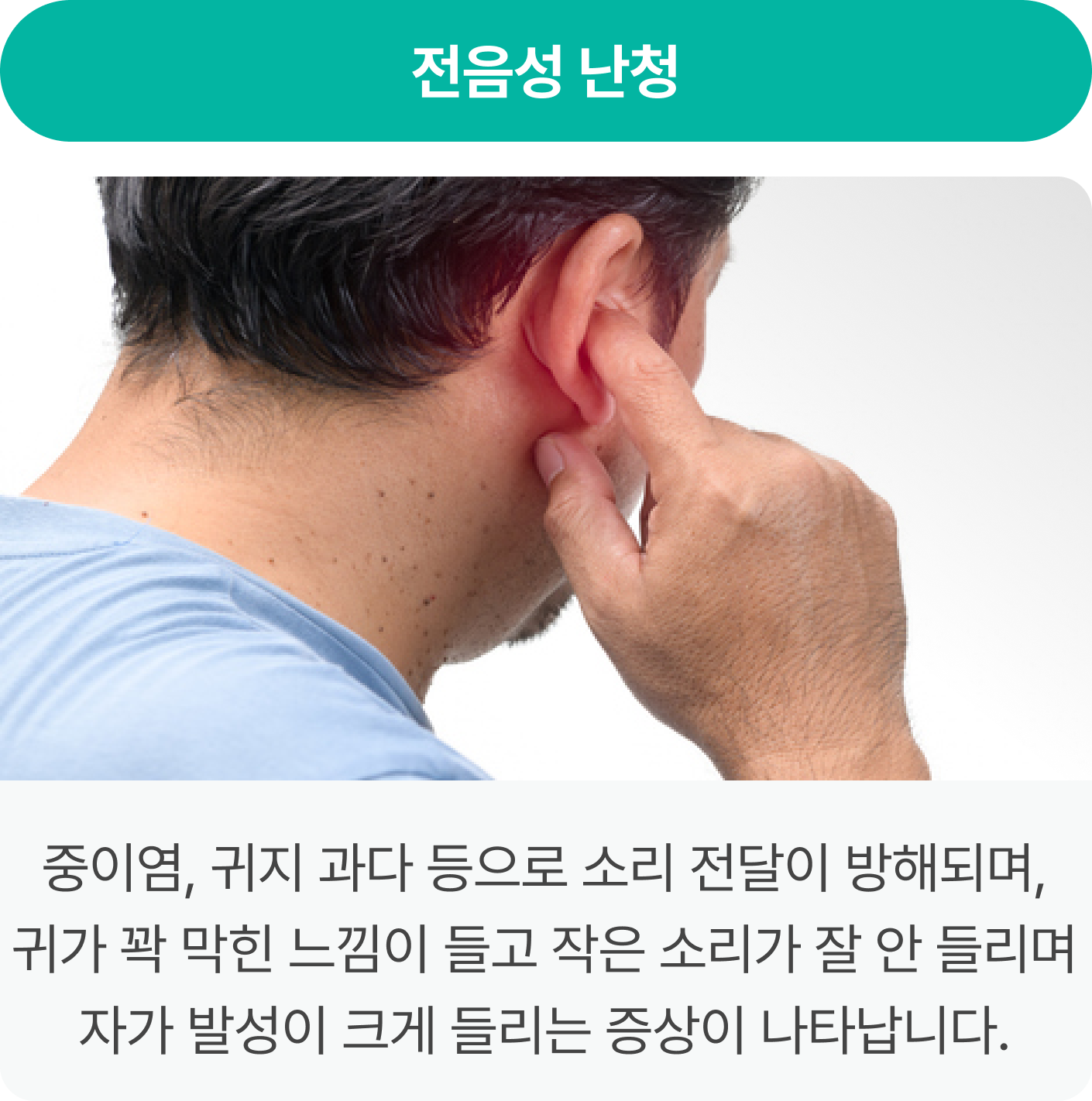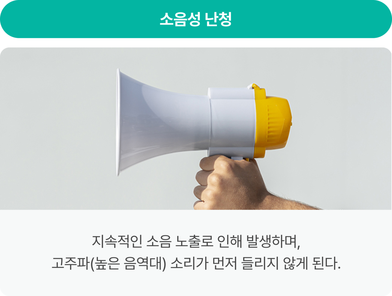 소리를 정상적으로 인지하기 어려운 상태로, 선천적 요인뿐만 아니라 노화,